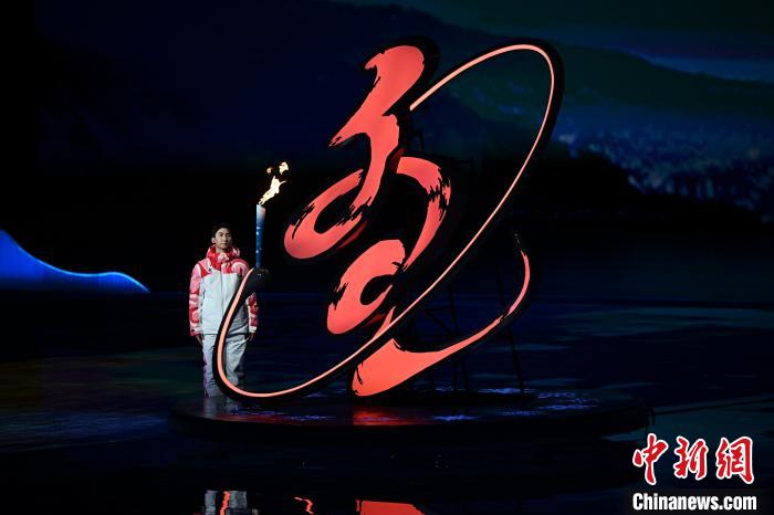 2月17日,第十四屆全國冬季運動會開幕式在內(nèi)蒙古呼倫貝爾市海拉爾區(qū)內(nèi)蒙古冰上運動訓(xùn)練中心舉行。圖為武大靖點燃火炬?!≈行律缬浾?崔楠 攝