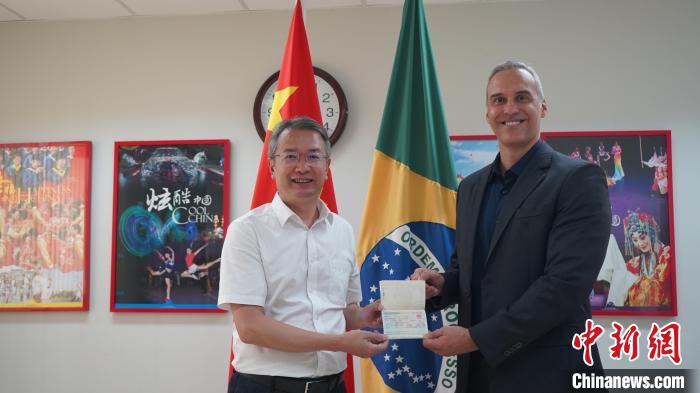 內托表示,十分榮幸獲發(fā)首張十年多次赴華簽證。中國發(fā)展成就令人欽佩,巴中友好前景光明,相信有關簽證便利政策將鼓勵更多巴西人赴華。