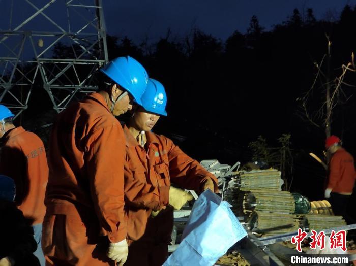 2月14日,國網(wǎng)浙江電力援湘搶險(xiǎn)隊(duì)在現(xiàn)場施工作業(yè)。 方崢 攝