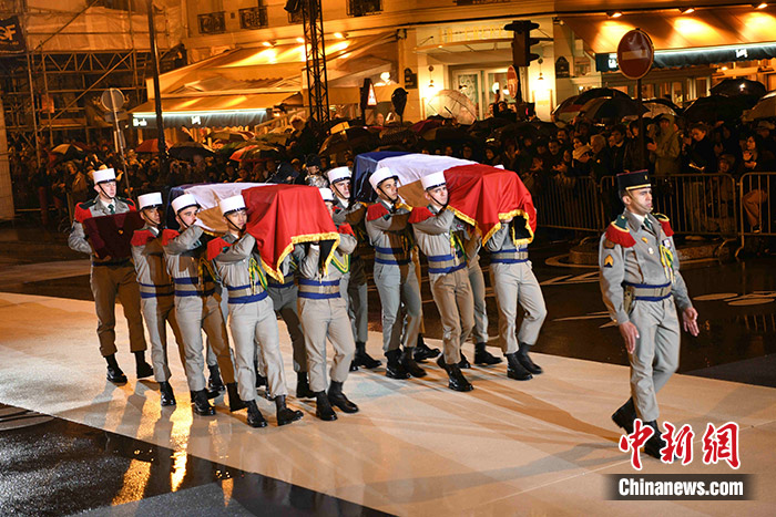當(dāng)?shù)貢r間2月21日晚,法國二戰(zhàn)時期抵抗德國納粹侵略的戰(zhàn)士米薩克·馬努尚與他的夫人梅麗內(nèi)一同入葬先賢祠。馬努尚是首位入葬先賢祠的法共抵抗運動成員。 中新社記者 李洋 攝