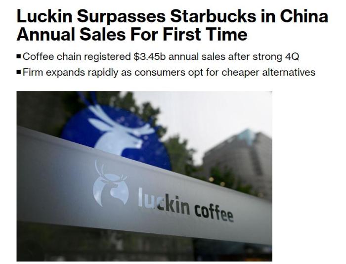 中新網2月25日電 據彭博社報道,中國本土品牌瑞幸咖啡2023年的銷售額,首次超過美國咖啡連鎖巨頭星巴克在中國的銷售額,成為中國市場最大的咖啡連鎖品牌。