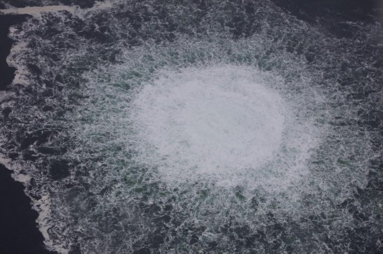 這張瑞典海岸警衛(wèi)隊(duì)2022年9月28日發(fā)布的航拍照片顯示的是,“北溪-1”天然氣管道仍在泄漏大量氣體。新華社發(fā)(瑞典海岸警衛(wèi)隊(duì)供圖)