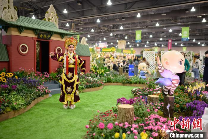 當(dāng)?shù)貢r(shí)間3月2日,一年一度的費(fèi)城花展在美國(guó)賓夕法尼亞州費(fèi)城開幕,以“功夫鄭州——花俏嵩山”為主題的鄭州展園當(dāng)天在花展上亮相。圖為鄭州市豫劇院演員袁娜表演豫劇。 Franck Zhou 攝