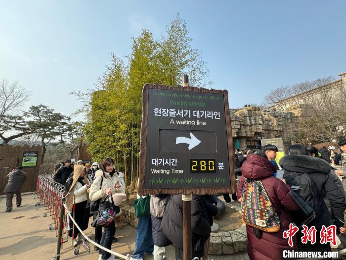 3月3日早上8時許,中新社記者來到位于韓國京畿道龍仁市的三星愛寶樂園,此時距離開園時間10時尚早,但正門外已排起百米長隊,大批民眾等待入園與大熊貓“福寶”告別。