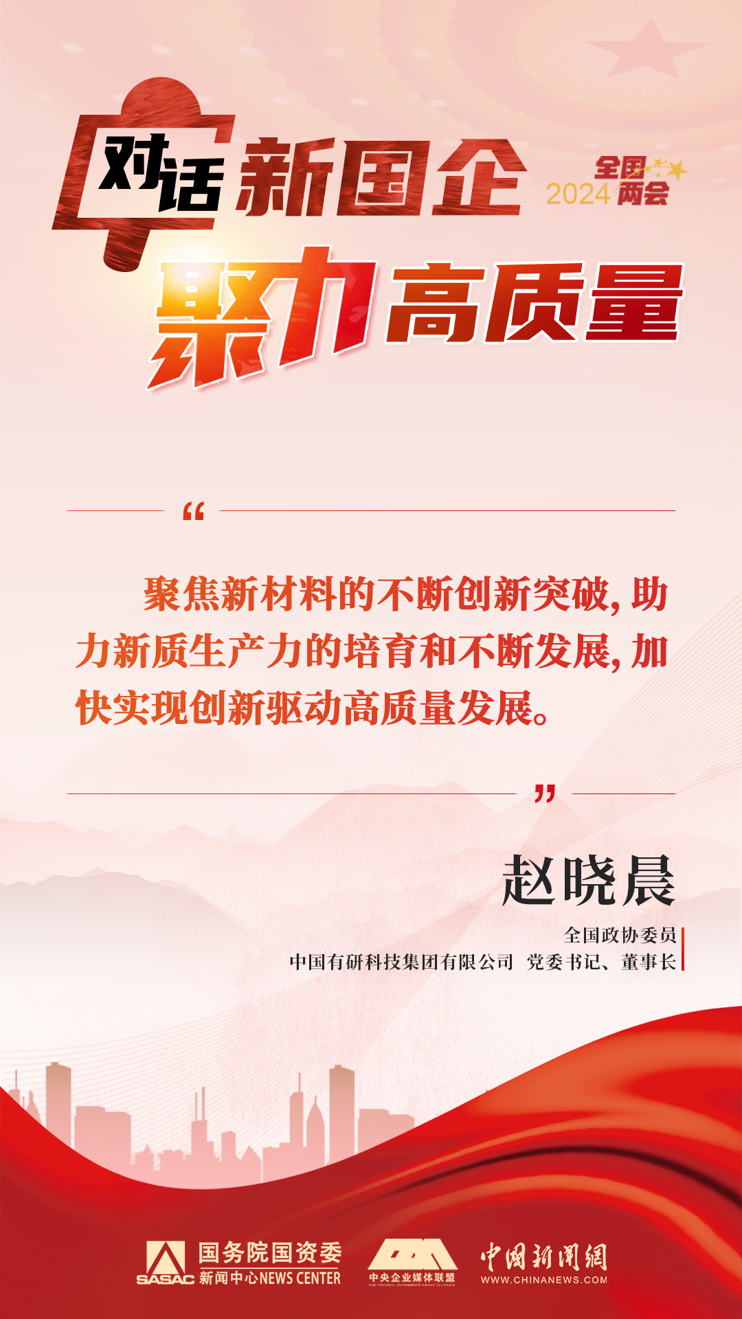 中新網(wǎng)北京3月6日電(記者 張尼) “我理解,科技創(chuàng)新是發(fā)展新質生產力的核心要素;新材料突破是戰(zhàn)新產業(yè)、未來產業(yè),是新質生產力孕育和發(fā)展的一個重要前提和基礎?!?全國政協(xié)委員,中國有研科技集團有限公司黨委書記、董事長趙曉晨在“對話新國企·聚力高質量”系列融媒體訪談中表示,要以新興產業(yè)發(fā)展引領新質生產力形成,培育企業(yè)發(fā)展新動能。