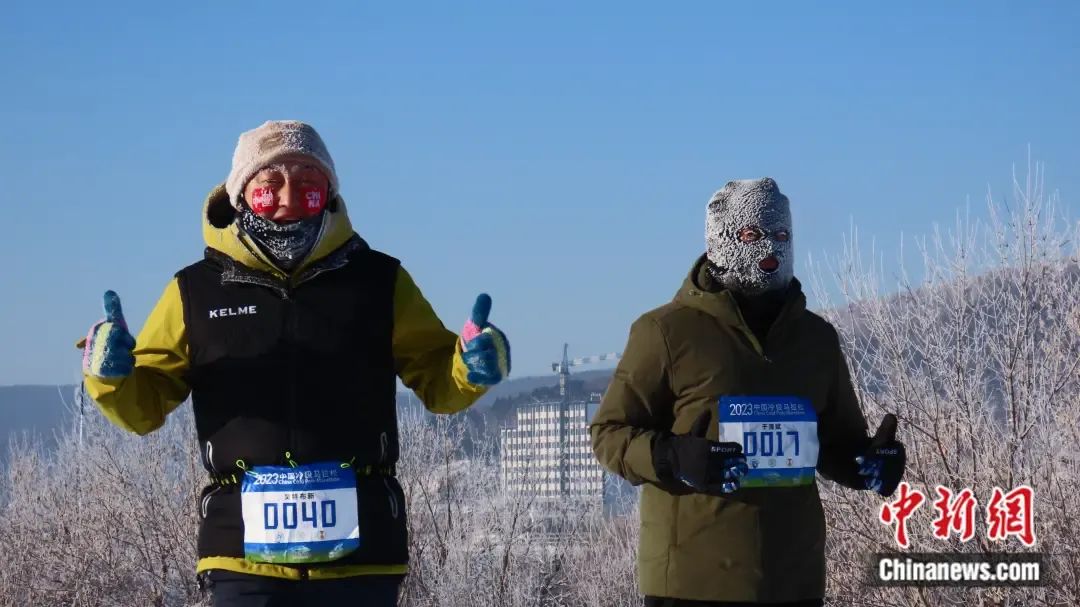 2023年冬,冷極馬拉松在幾近-40℃的低溫中激情開跑。 王鄭胤 攝