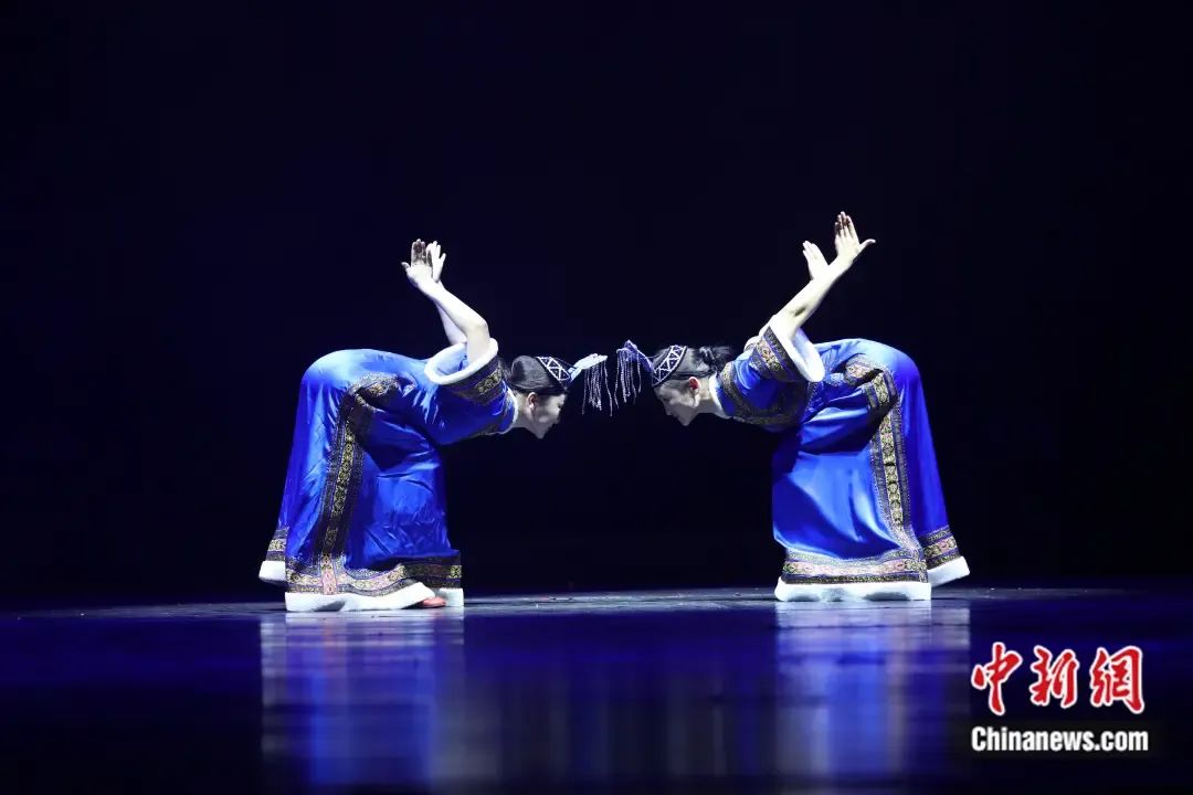 國家級非物質(zhì)文化遺產(chǎn)項目——達(dá)斡爾族傳統(tǒng)歌舞魯日格勒搬上舞臺。 蔣希武 攝