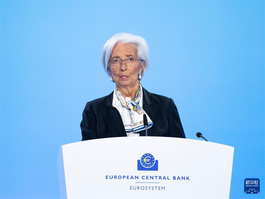 3月7日,歐洲中央銀行行長拉加德在德國法蘭克福歐洲中央銀行總部出席新聞發(fā)布會。新華社記者 張帆 攝