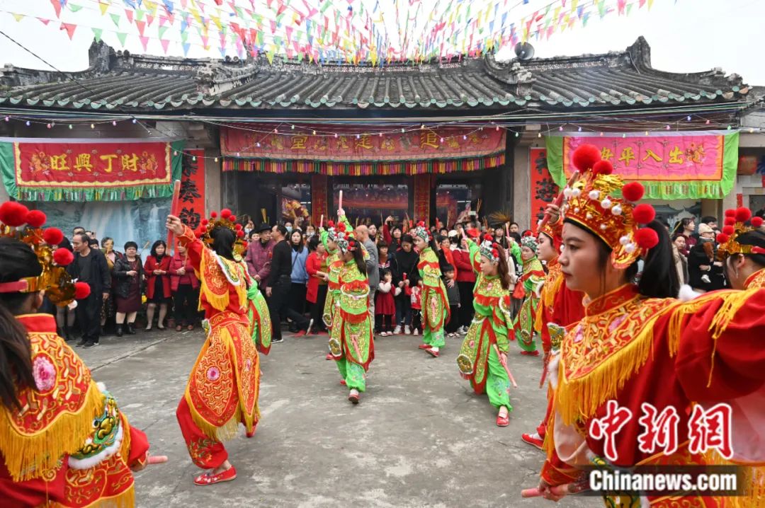 2023年2月9日,廣東潮州,潮陽(yáng)西門女子英歌隊(duì)亮相仙都鄉(xiāng)媽祖文化巡游活動(dòng)。陳楚紅 攝