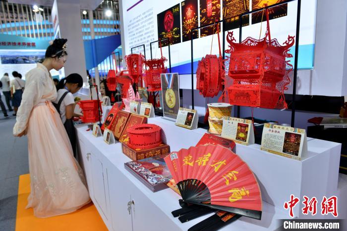 2023年8月5日,福建廈門,泉州傳統(tǒng)花燈文創(chuàng)作品吸引參觀者。中新社記者 呂明 攝