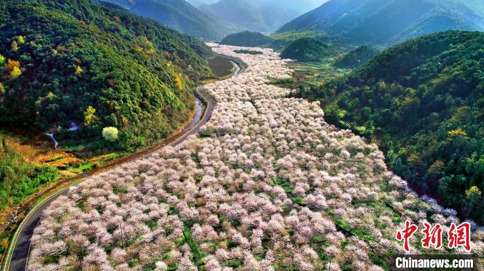 中新網(wǎng)紹興3月10日電(項(xiàng)菁)眼下,隨著天氣漸暖,位于浙江紹興上虞區(qū)章鎮(zhèn)鎮(zhèn)的“中國(guó)最美櫻花谷”——張村櫻花谷逐漸熱鬧起來。每到3月,綿延于山谷中的600多畝櫻花就會(huì)漸次綻放,朵朵櫻花不僅吸引客流,還帶動(dòng)農(nóng)戶在家門口創(chuàng)收。