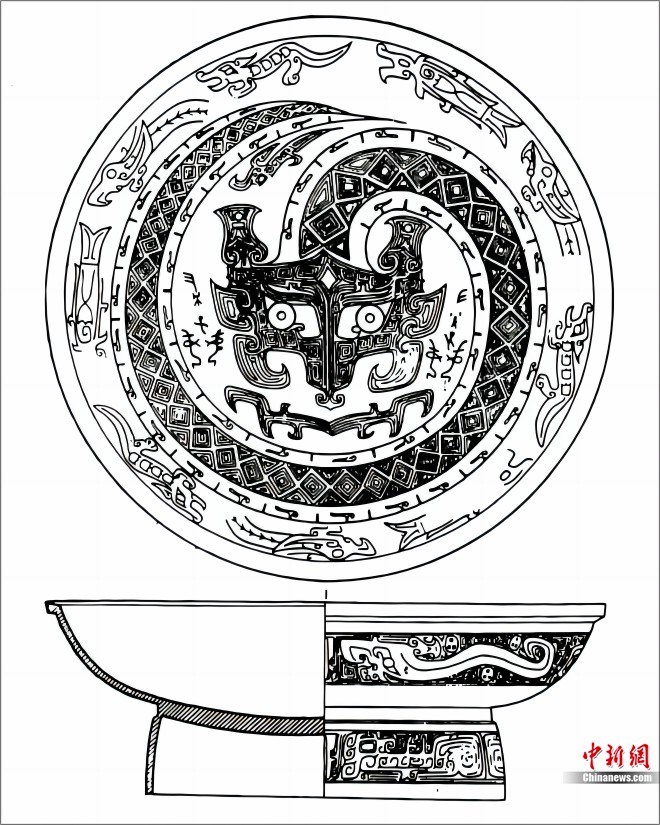 商代晚期青銅器獸面紋線(xiàn)圖。受訪者供圖