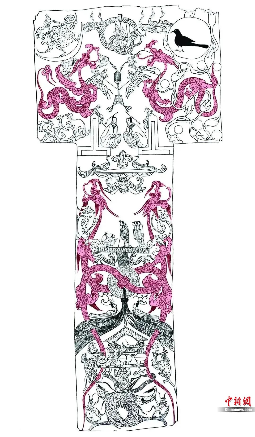 湖南長(zhǎng)沙馬王堆漢墓出土T形帛畫(huà)線(xiàn)圖。受訪者供圖