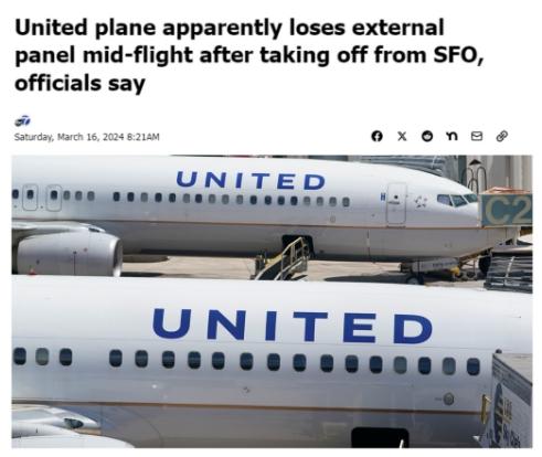 3月,美聯(lián)航波音客機又出現(xiàn)了包括引擎起火、輪胎脫落、滑出跑道在內(nèi)的多起事故。