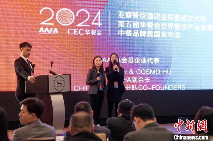 當(dāng)天,與亞裔餐飲酒店業(yè)聯(lián)盟成立大會(huì)同期舉行的還有第五屆華餐會(huì)世界餐飲產(chǎn)業(yè)發(fā)展大會(huì)暨中餐品牌美國發(fā)布會(huì)?;顒?dòng)現(xiàn)場,來自中美兩國逾400位餐飲界人士匯聚一堂,多名企業(yè)代表上臺(tái)分享經(jīng)驗(yàn),探討中餐品牌出海前景及本地亞裔餐飲行業(yè)未來發(fā)展。