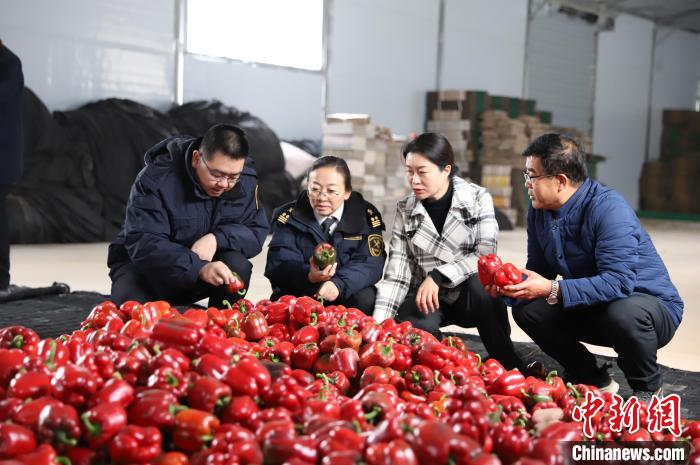 圖為西寧海關(guān)工作人員對出口的彩椒進行檢查。 西寧海關(guān) 供圖