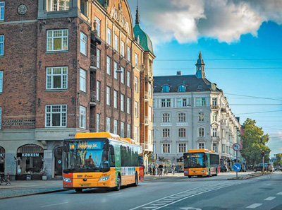 近年來,越來越多的中國品牌純電動大巴出口海外,為當?shù)孛癖妿砭G色出行體驗,助力公共交通綠色轉型。圖為中國宇通純電動大巴行駛在丹麥首都哥本哈根街頭。