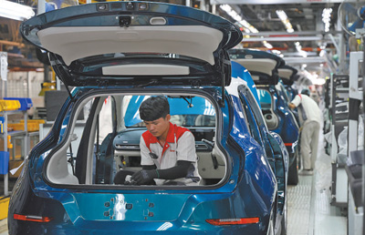 今年1月,中國車企長城汽車旗下電動汽車歐拉好貓在泰國羅勇新能源汽車制造基地正式下線,成為泰國首款本土量產(chǎn)的純電車型,將加速泰國汽車行業(yè)電氣化轉型。圖為該制造基地的生產(chǎn)車間內(nèi),工人在進行汽車裝配作業(yè)。