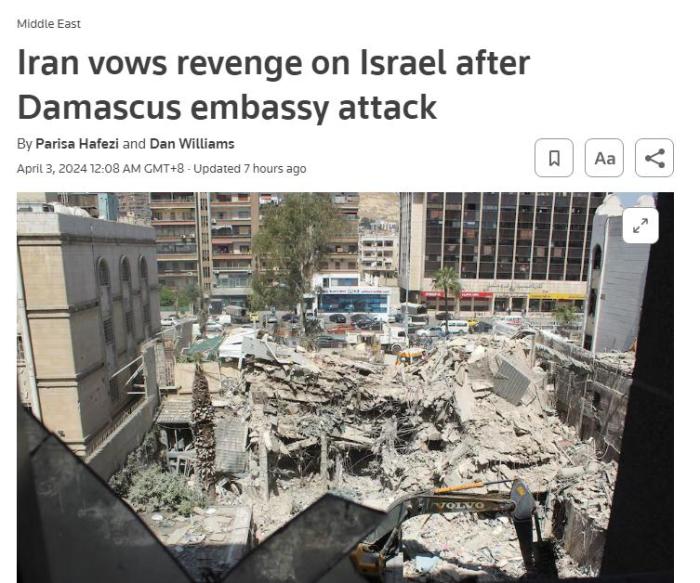 據(jù)此前報道,伊朗伊斯蘭革命衛(wèi)隊當(dāng)?shù)貢r間1日表示,伊朗駐敘利亞大使館領(lǐng)事部門建筑遭以色列襲擊,造成包括高級將領(lǐng)在內(nèi)的多名成員死亡。