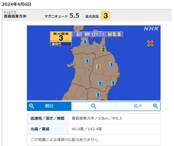 據(jù)報(bào)道,包括青森縣、巖手縣和北海道等多地均有震感,其中巖手縣盛岡市的震感最強(qiáng),達(dá)到震度3級(jí)。
