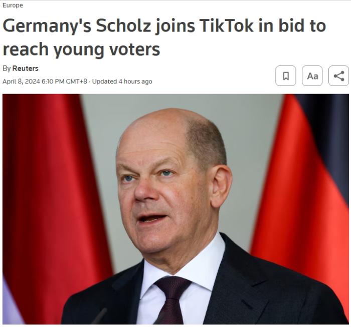 報(bào)道稱,朔爾茨加入TikTok是為吸引年輕選民。兩個月前,美國總統(tǒng)拜登也正式加入了TikTok。