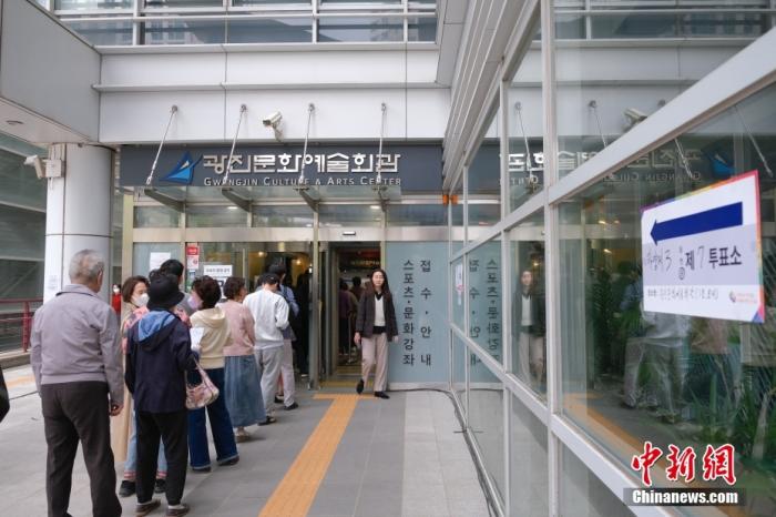 當(dāng)?shù)貢r(shí)間4月10日,韓國(guó)第22屆國(guó)會(huì)議員選舉啟動(dòng)正式投票,各政黨候選人將角逐國(guó)會(huì)300個(gè)議席。圖為選民排隊(duì)進(jìn)入首爾市廣津區(qū)一處投票站。