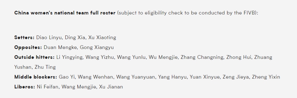 據悉,該名單還將接受國際排聯資格審查。具體名單如下: