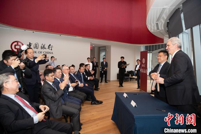 當地時間4月10日,以“經濟合作與文化傳承的雅致之約”為主題的“甘肅雅集”推介活動在美國紐約曼哈頓舉行。圖為甘肅省人民對外友好協會同美中綠色基金會簽署了諒解備忘錄?! ≈行律缬浾?廖攀 攝