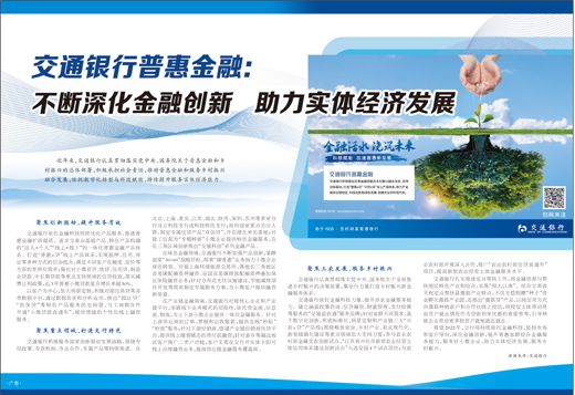 交通銀行普惠金融:不斷深化金融創(chuàng)新 助力實體經濟發(fā)展