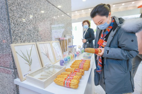 1月6日,代表會(huì)前參觀種子包衣成品展臺(tái)。 本報(bào)記者 潘之望攝