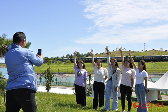 游客在遷安市金嶺礦山生態(tài)修復旅游觀光景區(qū)打卡留念(資料圖片)。 商立超攝