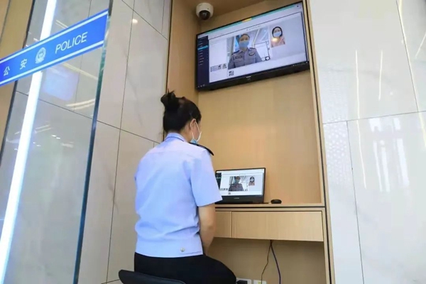 “鹽之e警”窗口民警為群眾遠程辦理業(yè)務(wù)。鹽城市公安局供圖