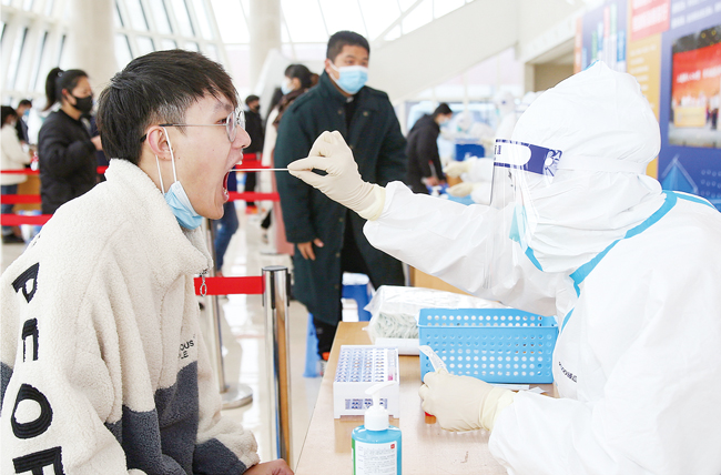 連日來(lái),金華東陽(yáng)醫(yī)護(hù)人員陸續(xù)來(lái)到一些學(xué)校給學(xué)生做核酸檢測(cè),讓他們不出校門(mén)就拿到核酸檢測(cè)報(bào)告。大學(xué)生寒假返鄉(xiāng)高峰期來(lái)臨,面對(duì)復(fù)雜的疫情防控形勢(shì),不少地方要求必須持核酸檢測(cè)陰性報(bào)告才能返鄉(xiāng)。(李建林)