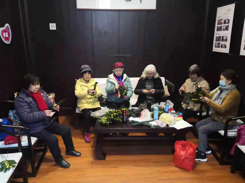 編織隊成員們聚在一起制作絨線桂花。受訪者供圖