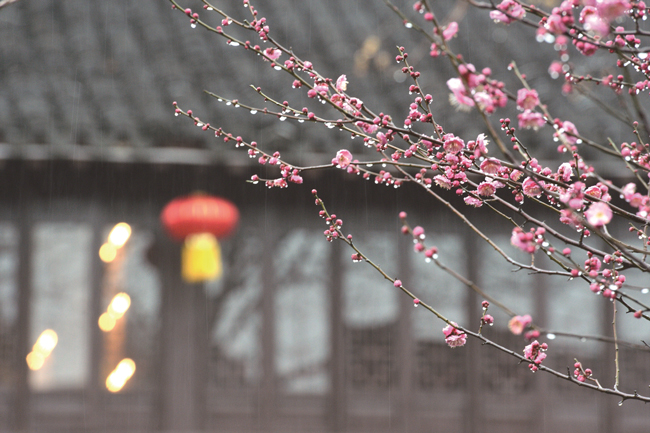 雨中紅梅迎春開(kāi)