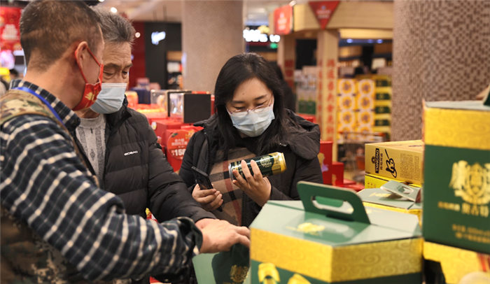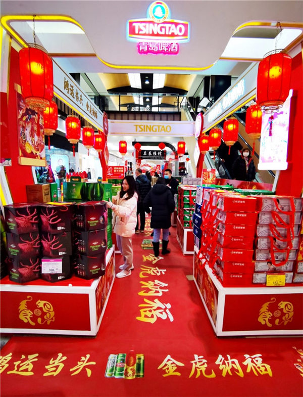 而青島啤酒“百年之旅“憑借獨(dú)一無(wú)二的珍惜原材、不惜工本的耗時(shí)慢釀、與無(wú)與倫比的琥珀原色和恒久回味,也在春節(jié)超高端市場(chǎng)上有叫好叫座?!比ツ曜咴L客戶就送的‘百年之旅’,有特色又有排面,客戶反饋特別好,今年特地團(tuán)購(gòu)一批,公司年會(huì)聚餐也喝他。“某外貿(mào)公司采購(gòu)部的劉先生,正在和超市的經(jīng)理談大宗采購(gòu),作為青島”特產(chǎn)“的青島啤酒,是他們每年過(guò)年的首選禮品,”還有今年推出虎年版的百年鴻運(yùn),特別新年應(yīng)景,配上特有的搖擺蓋開(kāi)起來(lái)特別有氣氛,喜慶?!?/p>
