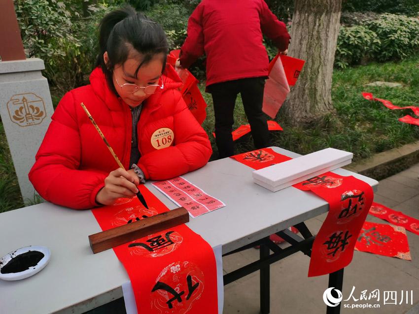 紅衣添喜慶,黑墨伴梅香。人民網(wǎng) 劉海天攝
