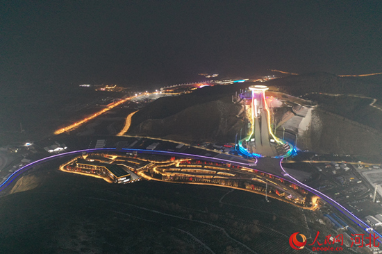 張家口賽區(qū)國家跳臺(tái)滑雪中心夜景。 馮波攝