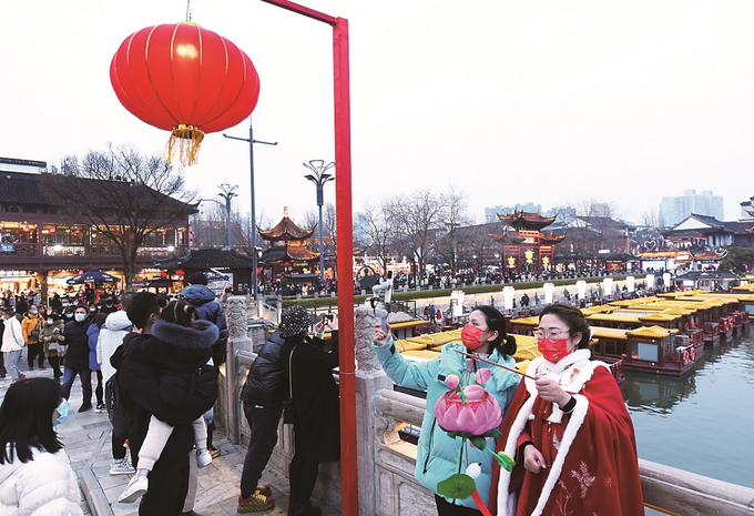元宵節(jié)游客掃描“雙碼”進(jìn)南京夫子廟景區(qū)