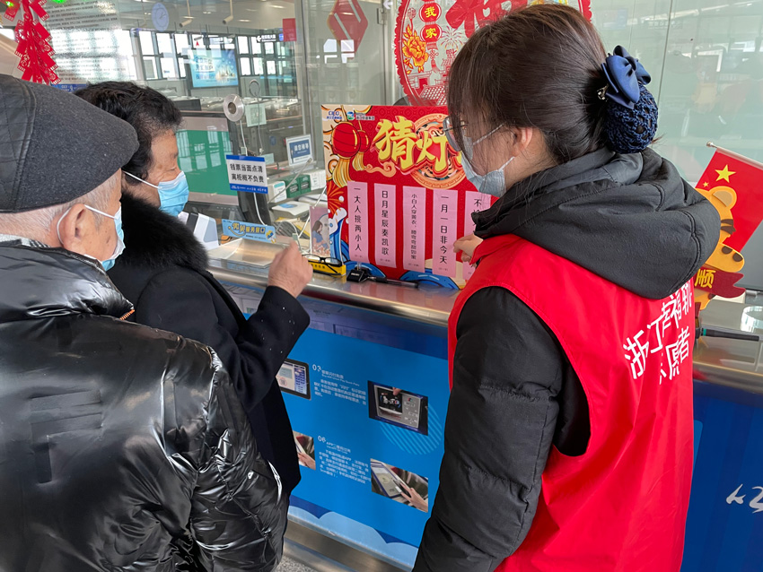 鬧元宵、扎虎燈、猜燈謎……節(jié)日里的杭海城際鐵路各車站熱鬧非凡。在張燈結(jié)彩的海寧海昌路站,工作人員熱情邀請乘客參加猜燈謎活動(dòng)?;顒?dòng)中,乘客們有的凝眉思考,有的積極討論,歡歡喜喜猜著燈謎,為節(jié)日里增添了一份歡樂和喜悅。海寧鹽官站又是另一番歡樂的場景,工作人員親自動(dòng)手,制作出一盞盞漂亮的虎燈,乘客們紛紛圍攏過來駐足觀看,希望在新的一年里贏得“好兆頭”,現(xiàn)場一片其樂融融,歡聲笑語。