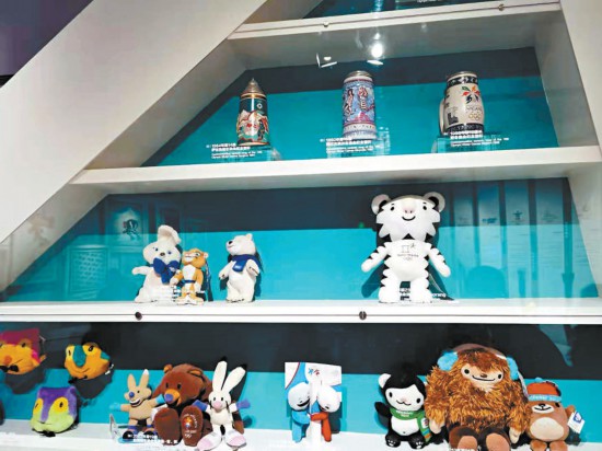 冰雪博物館陳列的歷屆冬奧會吉祥物。 李如意攝