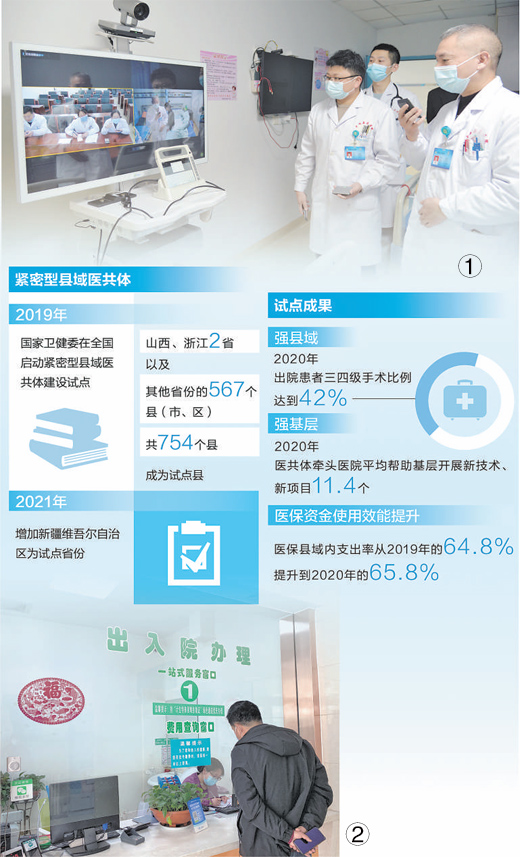近日,國家衛(wèi)健委印發(fā)《醫(yī)療機(jī)構(gòu)設(shè)置規(guī)劃指導(dǎo)原則(2021—2025年)》,要求按照縣鄉(xiāng)一體化、鄉(xiāng)村一體化原則積極發(fā)展緊密型縣域醫(yī)共體。2019年,國家衛(wèi)健委在全國啟動緊密型縣域醫(yī)共體建設(shè)試點(diǎn)。目前全國已有535個縣建成縣、鄉(xiāng)、村三級聯(lián)動的緊密型縣域醫(yī)共體,試點(diǎn)縣醫(yī)療服務(wù)效能提高,縣域內(nèi)就診率超90%。