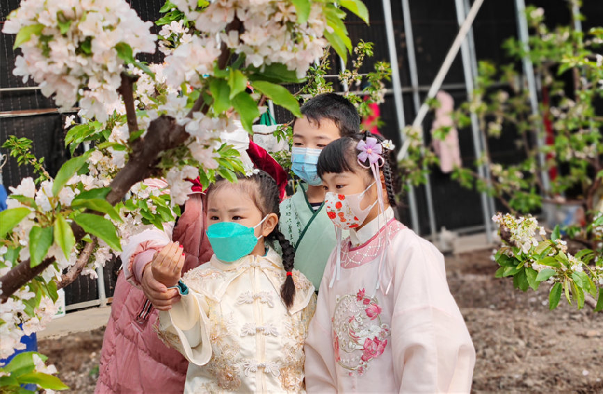 走進茶淀街道孟家瞿卩村種植戶于長晶的大棚,仿佛置身于花海之中。大棚外春寒料峭,大棚內溫度適宜、花開正艷。櫻桃花盛開的美景吸引了不少游客前來打卡拍照,有的小游客為了拍出好看的照片,還特意穿來漢服來和櫻桃花合影拍照。農戶搶抓農時,辛勤勞作,確保今年的櫻桃豐產豐收。“櫻桃管理需要人勤快,不能偷懶?!庇陂L晶一邊忙著給櫻桃樹修剪枝條一邊說道。這幾天,她和家人每天都很忙碌,盡管勞累,但心里卻很高興。于長晶說:“我們今年借助科學管理,有的大棚里的櫻桃已經結出果實。大概到3月下旬,大片櫻桃都成熟了,到時候游客就可以來采摘了。”