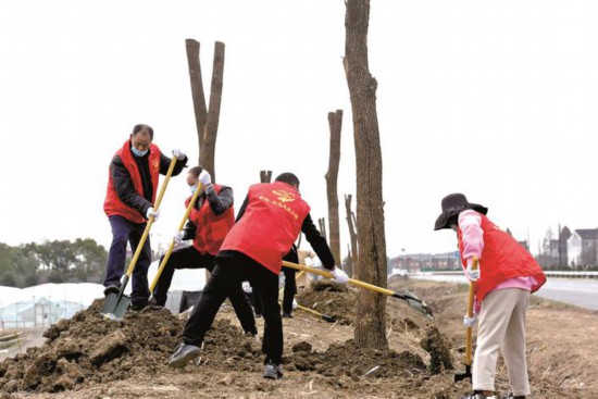 3月10日上午,嘉興秀洲區(qū)組織機(jī)關(guān)干部和志愿者開展義務(wù)植樹活動(dòng),大家用實(shí)際行動(dòng)扮靚家園。(馮玉坤)