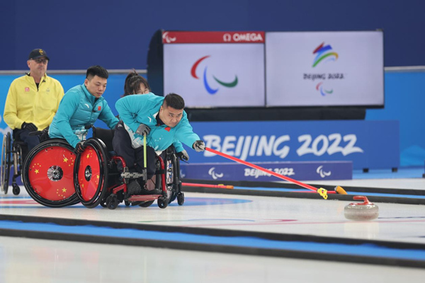 人民網(wǎng)哈爾濱3月12日電 (楊雪楠)3月12日,在北京國家游泳中心“冰立方”舉行的北京冬殘奧會(huì)輪椅冰壺決賽中,中國隊(duì)?wèi)?zhàn)勝瑞典隊(duì)獲得金牌,這是中國輪椅冰壺隊(duì)在平昌2018年冬殘奧會(huì)奪金后的成功衛(wèi)冕。在決賽中,中國輪椅冰壺隊(duì)隊(duì)長、黑龍江運(yùn)動(dòng)員王海濤在關(guān)鍵時(shí)刻投出漂亮的“雙飛”,有力助力了中國隊(duì)最終奪金。