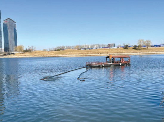工作人員駕駛智能清理船凈化水面。本報實習(xí)記者 張佳琪攝