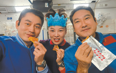 執(zhí)行迄今時(shí)間最長(zhǎng)一次太空飛行,神舟十三號(hào)航天員趕上了第一次在太空跨年,第一次在空間站過春節(jié)。在地面團(tuán)隊(duì)的精心保障下,航天員們除夕夜為人們送上來自太空的新年祝福,在空間站度過了年味十足、充實(shí)精彩的虎年春節(jié)。從太空出艙、“天宮課堂”開講,到手控遙操作完成貨運(yùn)飛船與空間站組合體交會(huì)對(duì)接試驗(yàn),從中國(guó)女航天員首次太空漫步,到3名航天員太空飛行累計(jì)超100天,太空“出差”期間,航天員們開展了一系列空間科學(xué)實(shí)驗(yàn)和技術(shù)試驗(yàn),刷新了一個(gè)又一個(gè)中國(guó)航天紀(jì)錄,為中國(guó)空間站正式建成打下堅(jiān)實(shí)基礎(chǔ)。