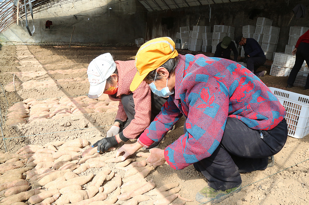 入春以來,梨之韻專業(yè)合作社將在11棟溫室大棚進(jìn)行“神農(nóng)1號(hào)”的育苗工作。每棟溫室大棚占地一畝,畝均排種2萬斤種薯、培育薯苗80萬株,5月份可全部出欄?!拔覀儗⑼ㄟ^‘神農(nóng)1號(hào)’紅薯育苗打造紅薯種苗示范基地,并把溫室大棚育苗經(jīng)驗(yàn)推廣到周邊村鎮(zhèn),帶動(dòng)更多村民在家門口就業(yè)增收。下一步,我們還將充分運(yùn)用智慧農(nóng)業(yè)系統(tǒng),實(shí)現(xiàn)育苗的自動(dòng)化灑水、補(bǔ)光、控溫等,有效推動(dòng)富硒紅薯育苗智慧化發(fā)展。”王飛表示。