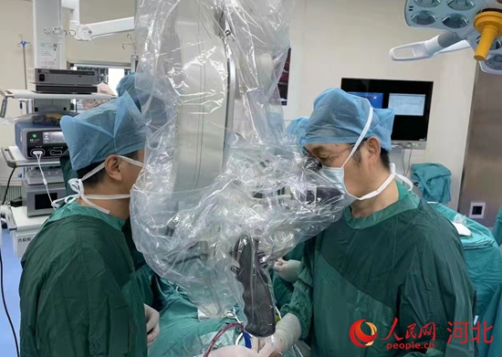 首都醫(yī)科大學(xué)宣武醫(yī)院河北醫(yī)院菅鳳增教授在為患者做手術(shù)。 受訪者供圖