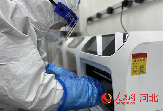 “在華大技術人員的協(xié)助下,來自河北各地支援的醫(yī)務人員已完成對生物安全知識、儀器設備使用注意事項等方面的工作梳理和培訓。實驗人員在輪班的情況下,保證實驗室能夠24小時運轉以達到相應的日檢測通量?!蓖踉品颊f。(林福盛、吳源生)